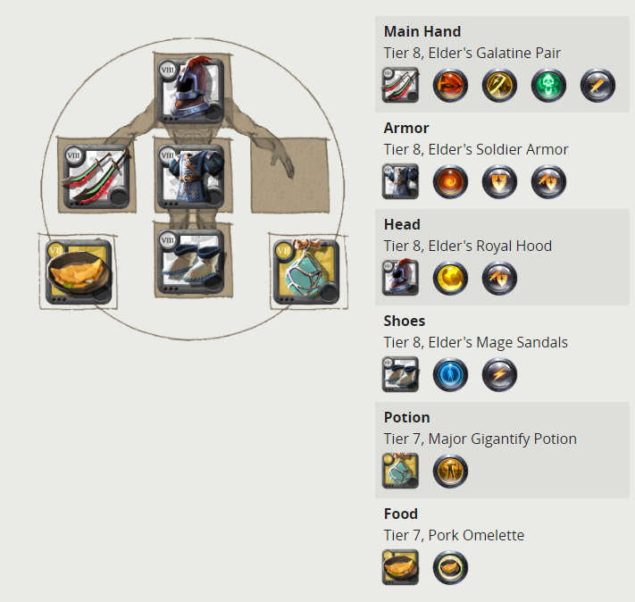 Galatine Pair, Royal hood, Soldier armor, Mage sandals